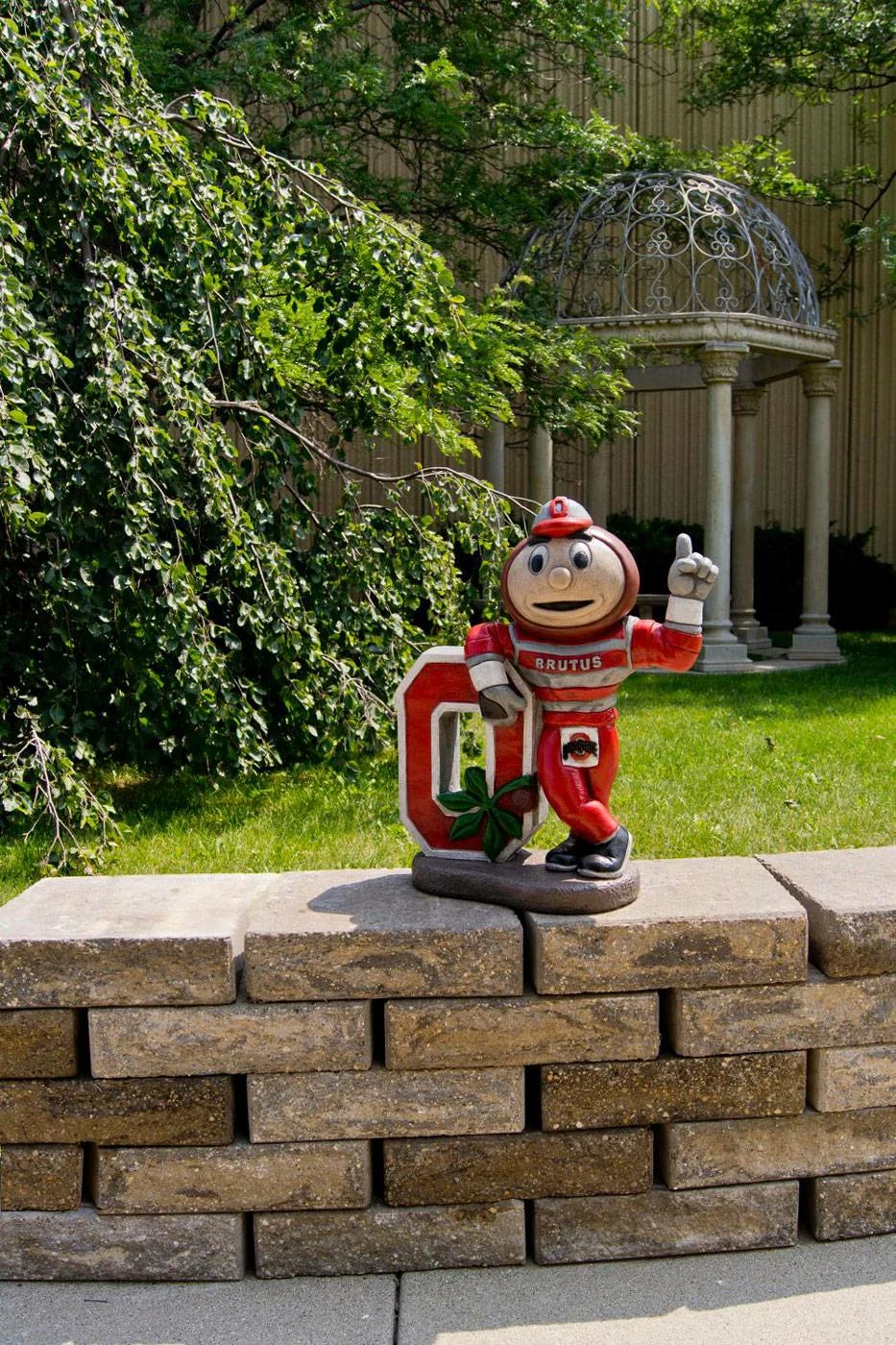 The Ohio State Brutus Buckeye Stone College Mascot makes a perfect welcome display outdoors, or a game day display piece inside! Handmade from premium cast stone, this beautiful sculpture is crafted with great attention +to detail. Each collegiate mascot is crafted to replicate the unique characteristics of the school’s mascot. It’s available in a school color painted finish, as well as a more traditional bronze or vintage finish. You can’t go wrong with any one!
