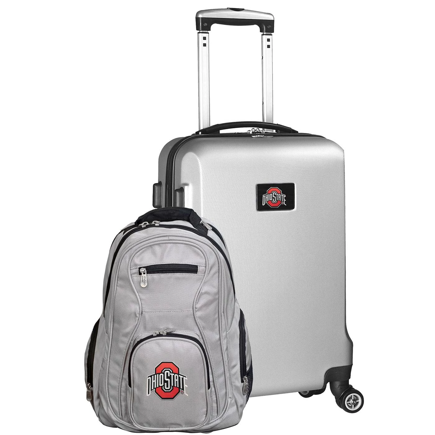 The Ohio State Buckeyes Deluxe 2-Piece Backpack & Carry-On Set combines Mojo’s two best selling pieces, their premium backpack and their durable hard-case spinner. The carry-on hardcase has multi-directional spinner wheels that offer +incredible 360 degree upright maneuverability. Composed of 100% ABS material, it is designed to absorb impact. It’s micro diamond texture reduces visible abrasions. It also has a fully lined interior with elastic garment straps, and interior zipper pocket for delicate items, top and side handles that make it easy to lift. The all-purpose travel backpack is built with water resistant ballistic nylon. There are two main compartments; one padded compartment to hold a 19″ laptop; the other to store your books, binders, files and folders. Also contains pen loops and cardholders. Features a spine saver shoulder pad shock absorber, a back airflow system, and a back strap that enables the backpack to slip over the handle of your wheeled luggage.