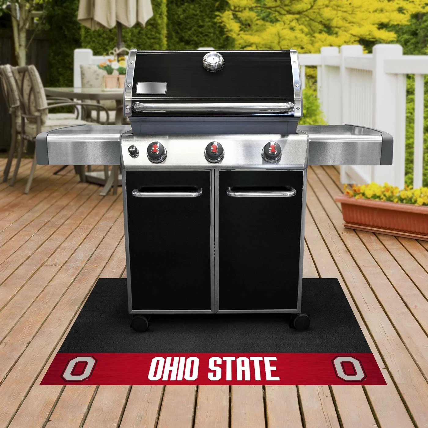 Keep your patio clean and protected with the Ohio State Buckeyes Grill Mat. Forget about hard to clean grease stains, this vinyl mat prevents spills from staining your deck or patio. Maintain a +clean grilling area, and show off your team pride with this officially licensed mat from Fanmats. Easily clean up the heavy duty mat with a garden hose and enjoy cooking out for the game!