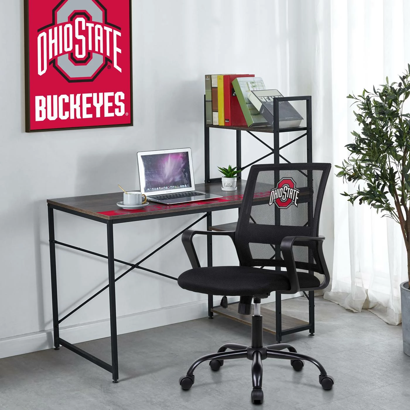 Sport your Ohio State Buckeyes Mesh Back Office Chair everyday at work. Great for your home office or corporate workspace.Seat has mesh fabric for comfort and long hours of work. Sturdy armrest, butterfly +mechanism, solid steel base with castors make this a chair to last. 275 pound weight limit. All materials meet with BIFA standards.