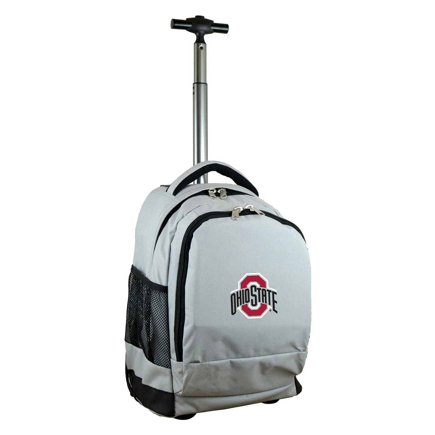 Perfect for fans on the go, the Ohio State Buckeyes Premium Wheeled Backpack features two large compartments with a padded laptop sleeve. It accommodates laptops and tablets up to 17″, with plenty of +additional storage space for books and personal belongings. The retractable handle and smooth rolling in-line wheels are convenient for walking in the airport. Corner guards, a bottom kick plate, and durable 600D polyester fabric provide excellent protection.