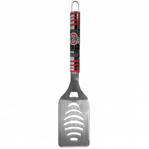 The Ohio State Buckeyes Tailgater Spatula really catches your eye with flashy chrome accents and vivid team digital graphics. The 420 grade stainless steel spatula is a tough, heavy-duty tool that will last +through years of tailgating fun. The spatula features a bottle opener and sharp serrated edge.