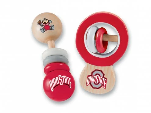 This set of two rattles is designed to make it easy for small baby hands to play with. Baby-friendly products help your little fan grow healthy and happy. Growth & Development toys offer +Co-Play Fun, Tactile Play, and Sensorimotor Skills. Show baby how to shake the rattles to make noise. Your smile encourages baby to keep playing as you teach them new skills. Help baby develop grasping and fine motor skills. Knobs, handles, and rings offer various shapes for baby to explore. Baby discovers cause-and-effect of movement making sound. Rings shake against each other to create rattle sounds. Real wood rattles are 100% Baby Safe made with real wood, non-toxic colors & finishes, and free of BPA, phthalates, & formaldehyde.